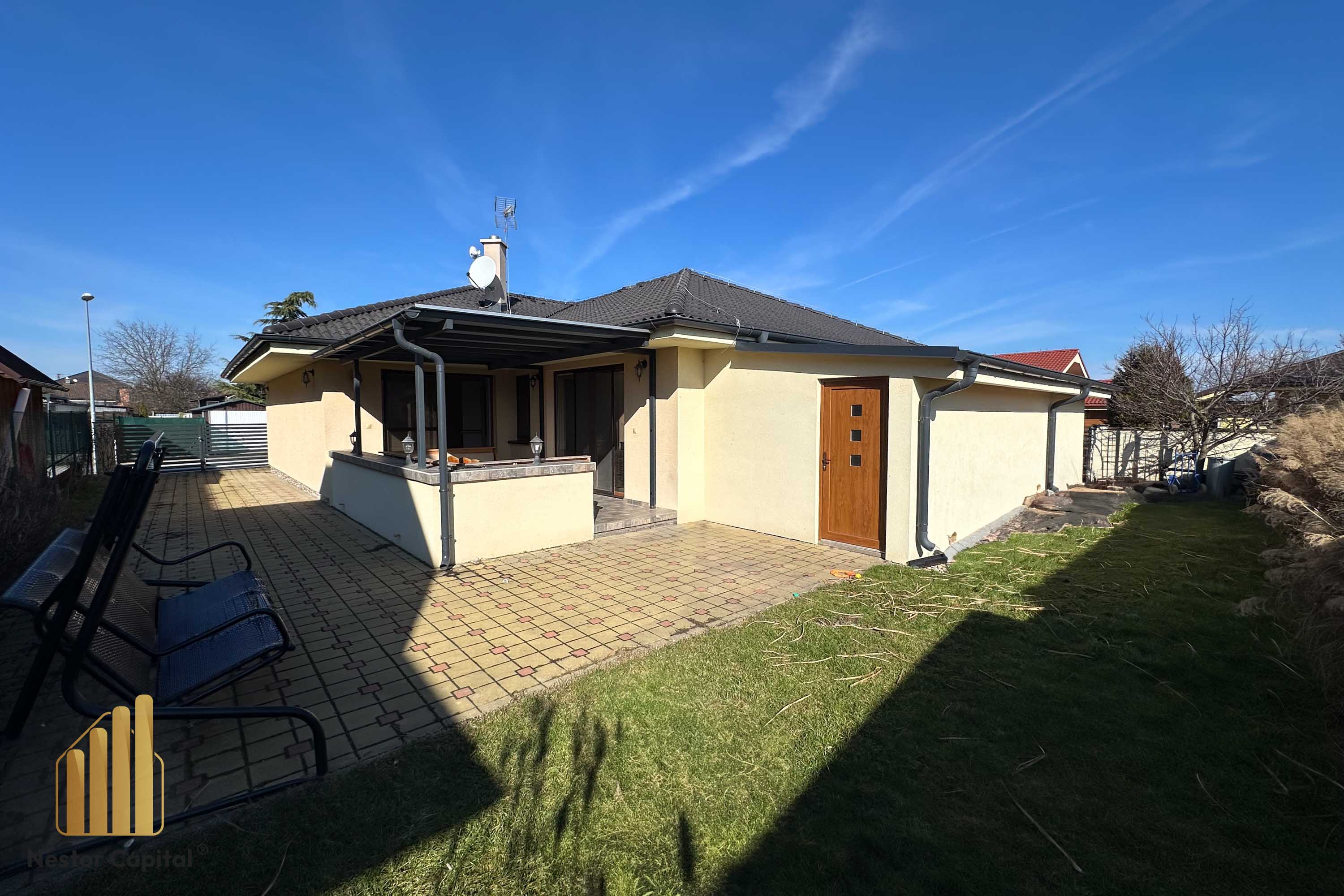 Dom bol postavený z tehly v roku 2015 a je navrhnutý tak, aby spĺňal požiadavky modernej rodiny na komfort, priestor aj funkčnosť. Dispozične pozostáva zo vstupnej chodby, troch samostatných nepriechodných izieb, samostatného WC, veľkej kúpeľne so sprchovým kútom aj vaňou, technickej miestnosti a oddelenej kuchyne. Hlavnou dominantou celého domu je však nadštandardne priestranná obývacia izba, ktorá pôsobí vzdušne, svetlo a prirodzene sa stáva srdcom celého bývania. Práve z nej je priamy vstup na zastrešenú terasu, ktorá ponúka ideálny priestor na rannú kávu, letné posedenia či pokojné večery s rodinou.